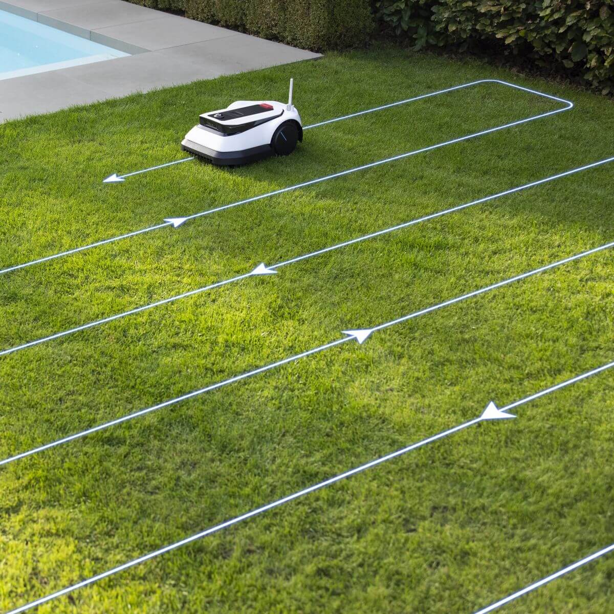 Vďaka inteligentnému plánovaniu trasy kosí robotická kosačka ECOVACS GOAT G1-2000 systematicky a v dokonale rovnomerných pruhoch, čím zaisťuje, že každé steblo trávy bude dokonale zastrihnuté. Lokalizačný systém TrueMapping Multi-Fusion zvyšuje účinnosť kosenia až 2,5-násobne a celú sezónu udržiava krásny, hustý a zdravý trávnik. S presnejším, rovnomernejším a efektívnejším kosením dokáže pokosiť až 600 m2 trávnika len za jeden deň3.