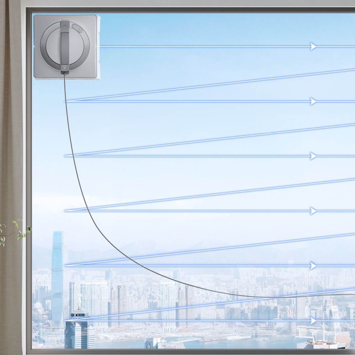 Kompozitné bezpečnostné lanko a napájací kábel sú elegantne spojené do jedného kombinovaného kábla, čím sa predchádza ich vzájomnému zamotávaniu. Až 5,5 metra extra dlhý kombinovaný kábel umožní čistenie aj tých najvyššie položených miest na vysokých oknách.
