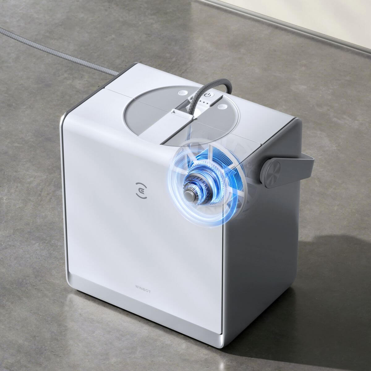 Prenosná stanica 6v1 robotického čističa okien ECOVACS WINBOT W2 OMNI je vybavená automatickým navíjaním kombinovaného kábla, čím posúva uskladnenie po čistení na úplne novú úroveň. Manipulácia s robotickým čističom okien nikdy nebola nikdy jednoduchšia a organizovanejšia.