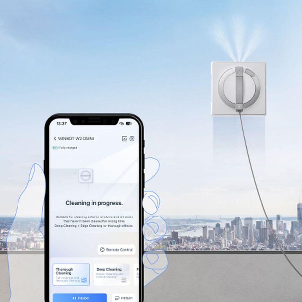 Mobilná aplikácia ECOVACS HOME je intuitívna a ľahko sa používa. Ponúka možnosť zvoliť si jeden z inteligentných automatických režimov čistenia a tiež možnosť manuálneho diaľkového ovládania robota. Okrem toho v nej nájdete praktické tipy na čistenie okien. Umývanie okien nebolo nikdy jednoduchšie.